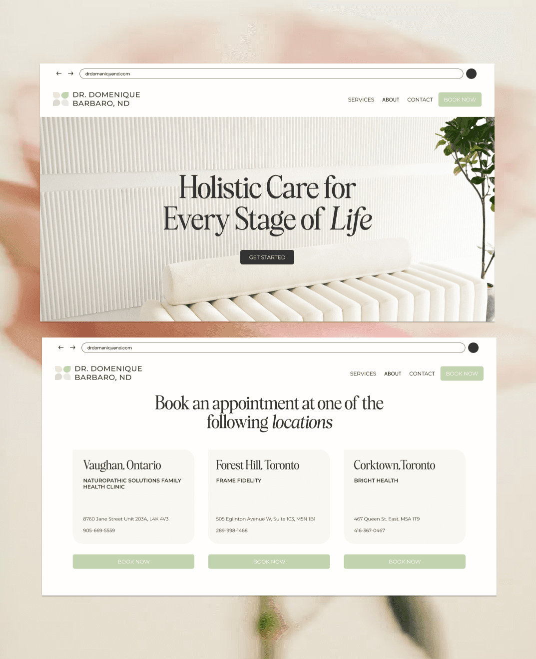 A full personal brand for Dr. Domenique Barbaro, ND — built from the ground up. The scope covered brand strategy, visual identity, web design, and digital collateral, creating a cohesive system that could carry her practice across every touchpoint with intention and consistency.