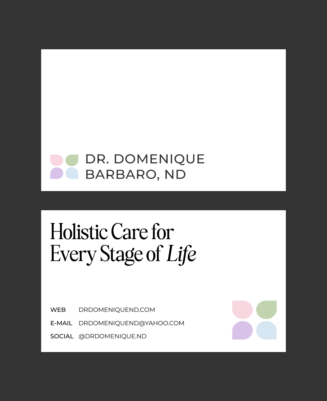The final brand gave Dr. Domenique a distinct, ownable identity that sets her apart from day one. Every element was built with scalability in mind, giving her a system that's ready to grow with her.
